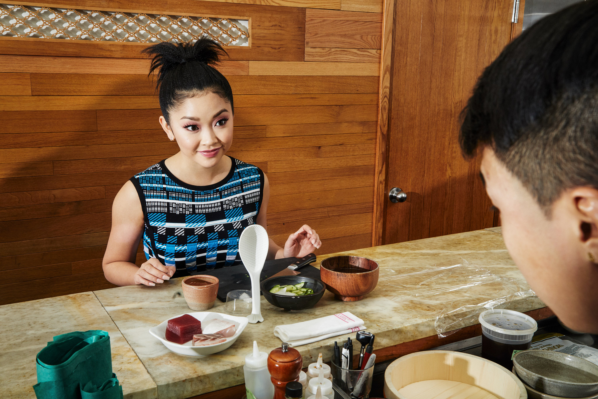 | Home > Miscellaneous > Magazines & Publications > Features in 2019 > Lana Condor Learns How to Make Sushi for NY Times (2019) |